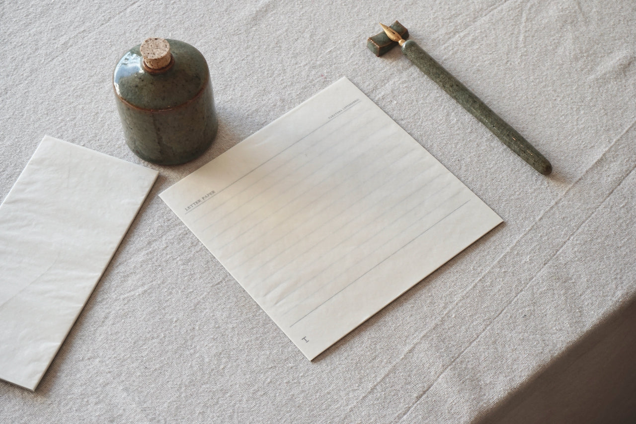 異なる長さの線の連なりから成る罫線が、味わい深い便せんです。
