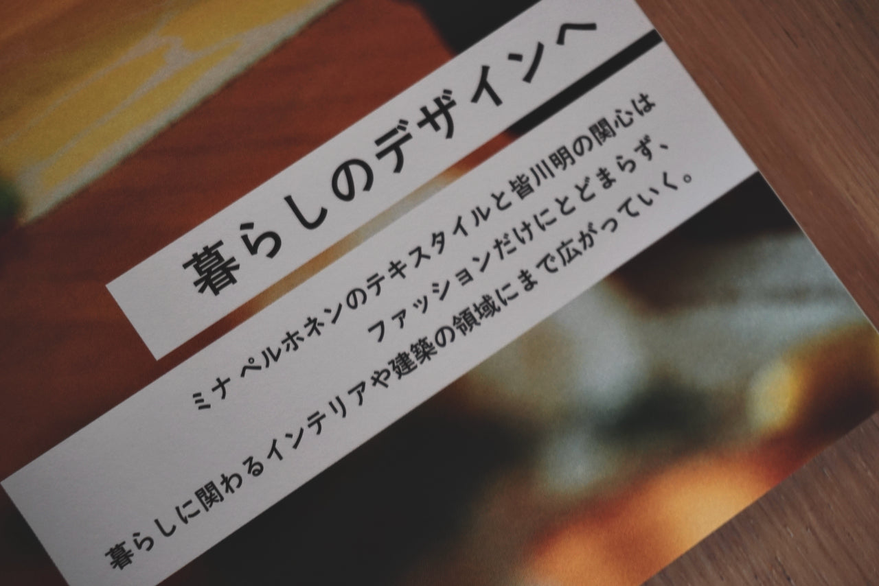 デザイナー・皆川明さんと初めて出会ったのは、minä perhonen eläväで友人のデンマークの陶芸家・Anne Blackから彼女の展示を観に来ないか、という誘いを受けて足を運んだ時だった。元々日用品を陶器で作陶する彼女なのだが、そのスタイルは少しアーティストめいたものが多く、この展示も「BOTANISK」展と題された植物をモチーフにした花器を中心にした展示だった。展示会場には皆川さんもおり、3人で一緒に展示を見る傍ら、「なんか植物みたいで、素敵ですよね」と呟いているのが印象的だった。その言葉の余韻の中には、デザインされたものや作られたものの存在の奥にある、ある種の輝きのような灯を見たようなそんな趣きを感じることができた。なので皆川さんは僕にとってものの奥を眺めているような人という印象なのだ。