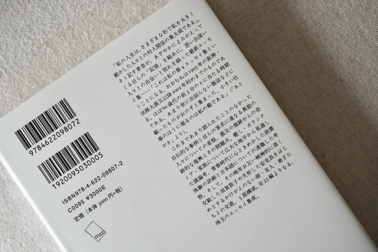 「私の人生は、さまざまな形で私を大きく動かした人々との対人関係の集大成である」。そう記す著者が、あざやかによみがえってくる自らの「記憶」を縦糸に、思い出深い人々との出会いと別れを綴った最新エッセイ集――「これは私の第4エッセイ集ということになる。おおむねは1995年の阪神・淡路大震災以降2002年初めまでのものである。ほぼ60歳代の前3分の2に当たる時期である。あまり世に出回らない雑誌などに載ったものがおのずと集まった。小さい仕事のほうに凝るのは私の癖である」(「あとがき」より)。