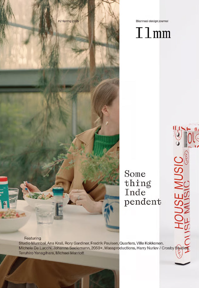 デザインジャーナル『Ilmm』(アイエルエムエム)の第2号。新世代から重鎮まで、充実したロングインタビューを中心に誌面を構成し、いっそう意外性と発見にあふれた内容になっています。巻頭ではインディペンデントなデザイナーとして広くリスペクトされる英国のマイケル・マリオットのスタジオを掲載。フォルマファンタズマに師事した新鋭ヨハンナ・ゼーレマン、きわめて自由な活動で注目されるスウェーデンのフレデリック・ポールセン、パリで自身のブランドを始めたアナ・クラシュも取り上げました。またビジョイ・ジェイン(スタジオムンバイ)やミケーレ・デ・ルッキのような巨匠にもインタビューしています。柳原照弘のVAGUE KOBEの撮り下ろし記事、デザイナーのヴィッレ・コッコネンの寄稿、NYの新スポットQuartersの紹介にもご注目を。表紙は、オーストラリアの建築写真家ローリー・ガーディナーの作品と、フレデリック・ポールセンの椅子のユニークピースです。