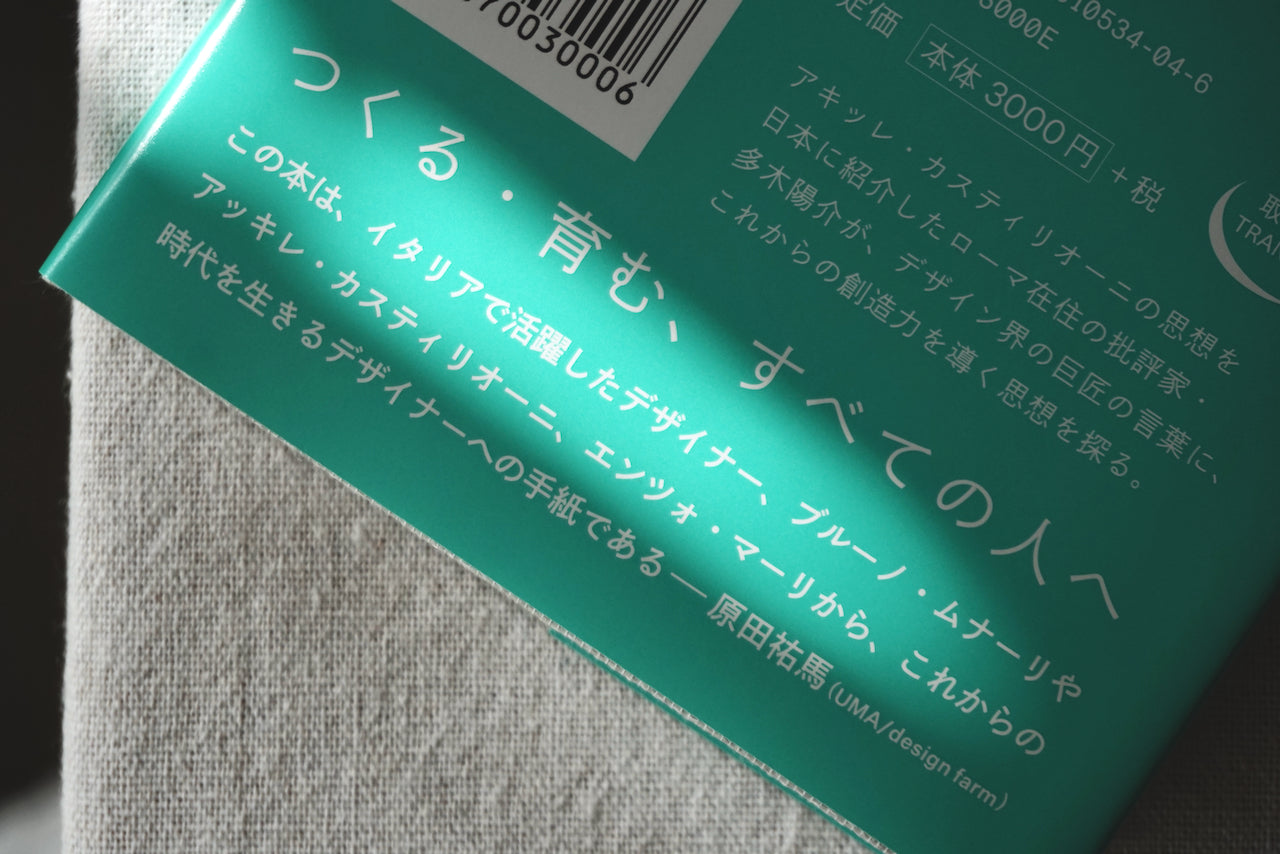 本書『失われた創造力へ: ブルーノ・ムナーリ、アキッレ・カスティリオーニ、エンツォ・マーリの言葉』はまさにあなたの薪に最良な火種を届けてくれることだろう。イタリアのデザインの巨匠・アキッレ・カスティリオーニ、エンツォ・マーリ、ブルーノ・ムナーリの過去に残した言葉から、ローマ在住の批評家・多木陽介さんがこれからの創造力へと導く思想を探求してまとめている一冊になっている。